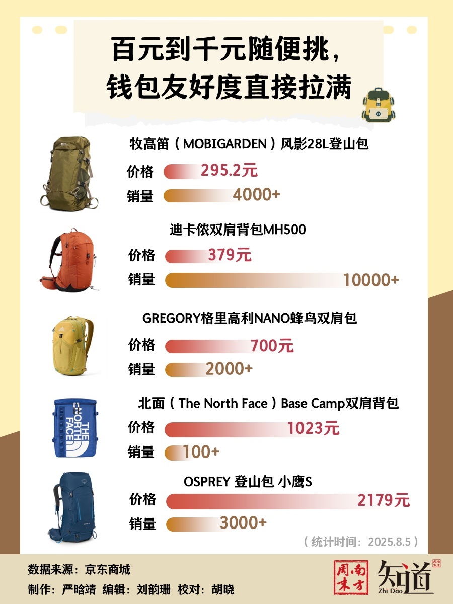 更让打工人心动的是户外包的钱包友好度,从当前热销款的价格来看,打工人青睐的户外包多为数百元,即使定位高端的系列,也仅仅千元左右。